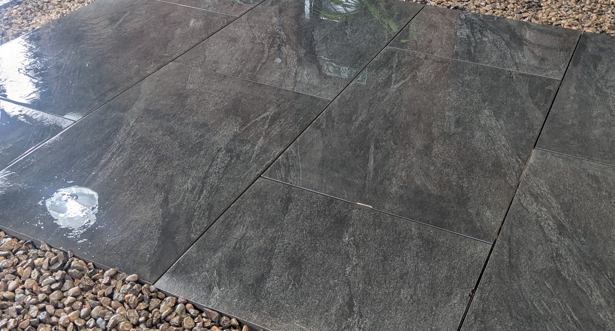 No! One of the biggest advantages of porcelain paving is that it doesn’t require sealing. Unlike natural stone, which is porous and needs protection, porcelain tiles are non-absorbent, meaning: