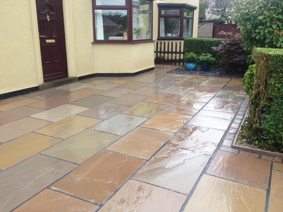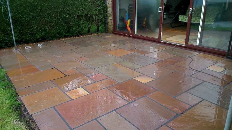Raj Green Indian Sandstone patio showing natural colour variation